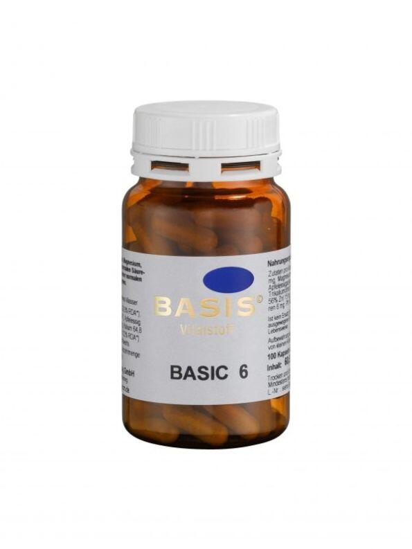 Basic 6 Kapseln pro Säuren-Basen-Stoffwechsel, mit Schachtelhalm, Apfelessig, Calcium, Magnesium, Kalium und Zink. Unterstützen Sie Ihr Säure-Basen-Stoffwechsel einfach und schnell. Für Veganer und Diabetiker geeignet. Laktose- und glutenfrei.