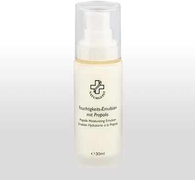 Feuchtigkeitemulsion mit Propolis ( neue Aufmachung) mit natürlichem Propolis, Mandelöl, Carotinöl und Feuchtigkeitsfaktoren. Die leichte Emulsion zieht schnell ein und ist für jeden Hauttyps geeignet. Die Emulsion wird auch gerne von Männern z. B. nach der Rasur verwendet.