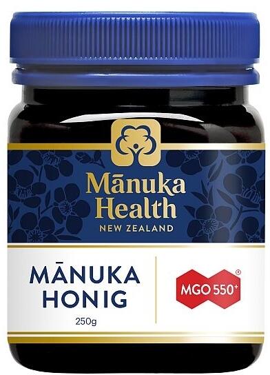 Der Herkules unter den MGO™ Honigen. Er enthält mindestens 550 mg Methylglyoxal (MGO™) pro kg Honig. Wie alle Honige ist Manuka-Honig für Menschen ab dem 1. vollendetem Lebensjahr geeignet. Manuka-Honig kann - das ist etwas Besonderes - bleibt auch wirksam, wenn man ihn in heiße Getränke einrührt, denn das MGO ist weitgehend hitzebeständig. Die Qualitäts- Herkunftsgarantie von Manuka Health: · 100 % aus Neuseeland · Zertifizierter natürlicher MGO-Gehalt · Qualität und Reinheit streng getestet · Garantierte Sicherheit durch Trustcode auf dem Deckel Lt. im "EU Register of nutrition and health claims made on foods" genannten Verordnungen sind uns jegliche gesundheits- bzw. krankheitsbezogene Angaben in Bewerbung von Lebensmitteln untersagt. (VO (EU) 1169/2011; VO (EG) 1924/2006) Damit soll der Verbrauchervorstellung entgegengewirkt werden, Lebensmittel seien geeignet Krankheiten zu verhüten, zu lindern oder zu heilen. Einer unsachgemäßen Selbstbehandlung der Verbraucher soll dabei vorgebeugt werden. Ebenfalls dürfen wir Sie an dieser Stelle auch nicht auf andere Informationsquellen zu Manuka-Honig verweisen. Nährwertangaben je 100 g: Energie 1400 kJ / 335 kcal Fett 0 g davon gesättigte Fettsäuren 0 g Kohlenhydrate 82 g davon Zucker 82 g Eiweiß 0,5 g Salz < 0,01 g Nettofüllmenge: Honig 250g Trocken, dunkel und vor Wärme geschützt lagern. Ursprungsland: Neuseeland Verarbeitung und Abfüllung: Manuka Health New Zealand Ltd. 66 Weona Court Te Awamutu 3800 New Zealand Import Deutschland/EU: Neuseelandhaus GmbH D-59192 Bergkamen