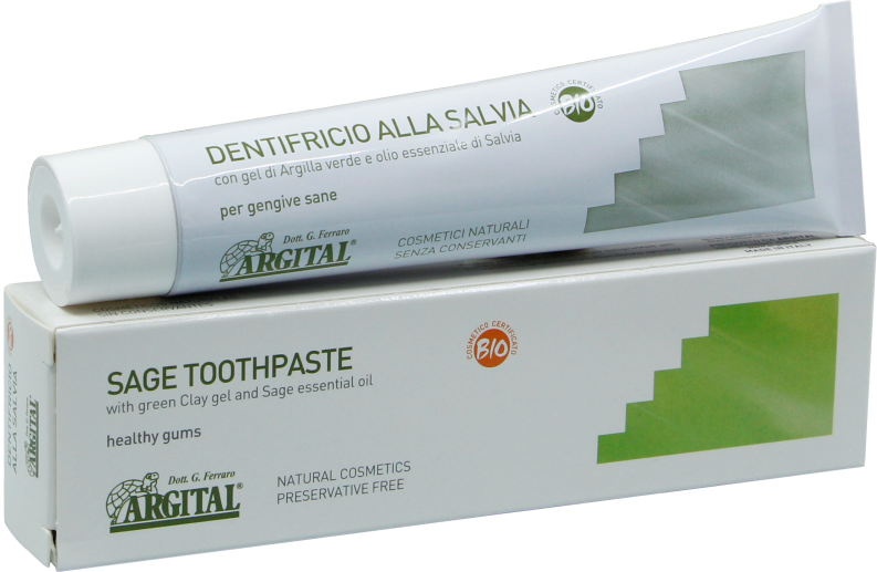 Die natürliche Zahnpflege mit Salbei, Salbei Extrakt, Rosen Extrakt, Berberitze Extrakt und Meersalz sowie der Grundlage aller Zahnpasten von ARGITAL, Tonerde-Gel, welches die natürlichen enthaltenen Mineralstoffe und Spurenelemente der Tonerde enthält, ohne die Kieselerde, diese hat eine abschleifende Wirkung und ist deshalb nicht in der Zahnpaste enthalten.