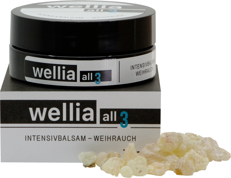 Wie in allen wellia Produkten ist auch im Intensivbalsam grüner "al hojari" Weihrauch enthalten. Weihrauch wird schon seit Jahrhunderten in verschiedenen Kulturen in der Medizin und gegen Hautprobleme eingesetzt. Der Intensivbalsam ist eine Soforthilfe bei juckender, geröteter, schuppenden Hautprobleme. Mindestens zweimal täglich - gerne auch öfters - auf die betroffenen, gereinigten Hautstellen auftragen. Auch bei Akne mit offenen Stellen die Entzündungen direkt eincremen. Der Intensivbalsam enthält wenige aber dafür sehr wirkungsstarke Inhaltsstoffe.